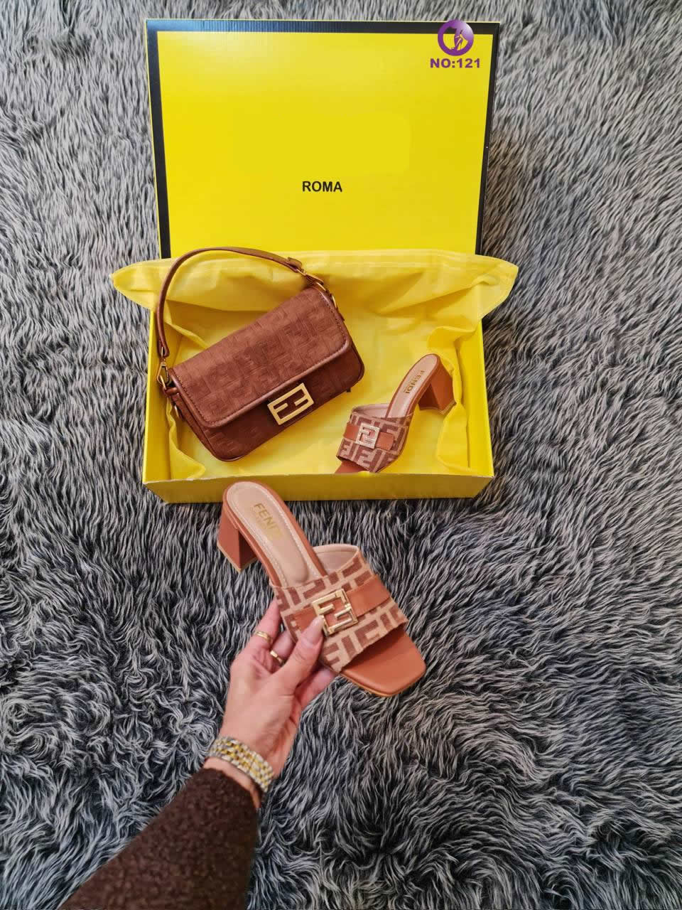 fnd women's high heels shoes bag set